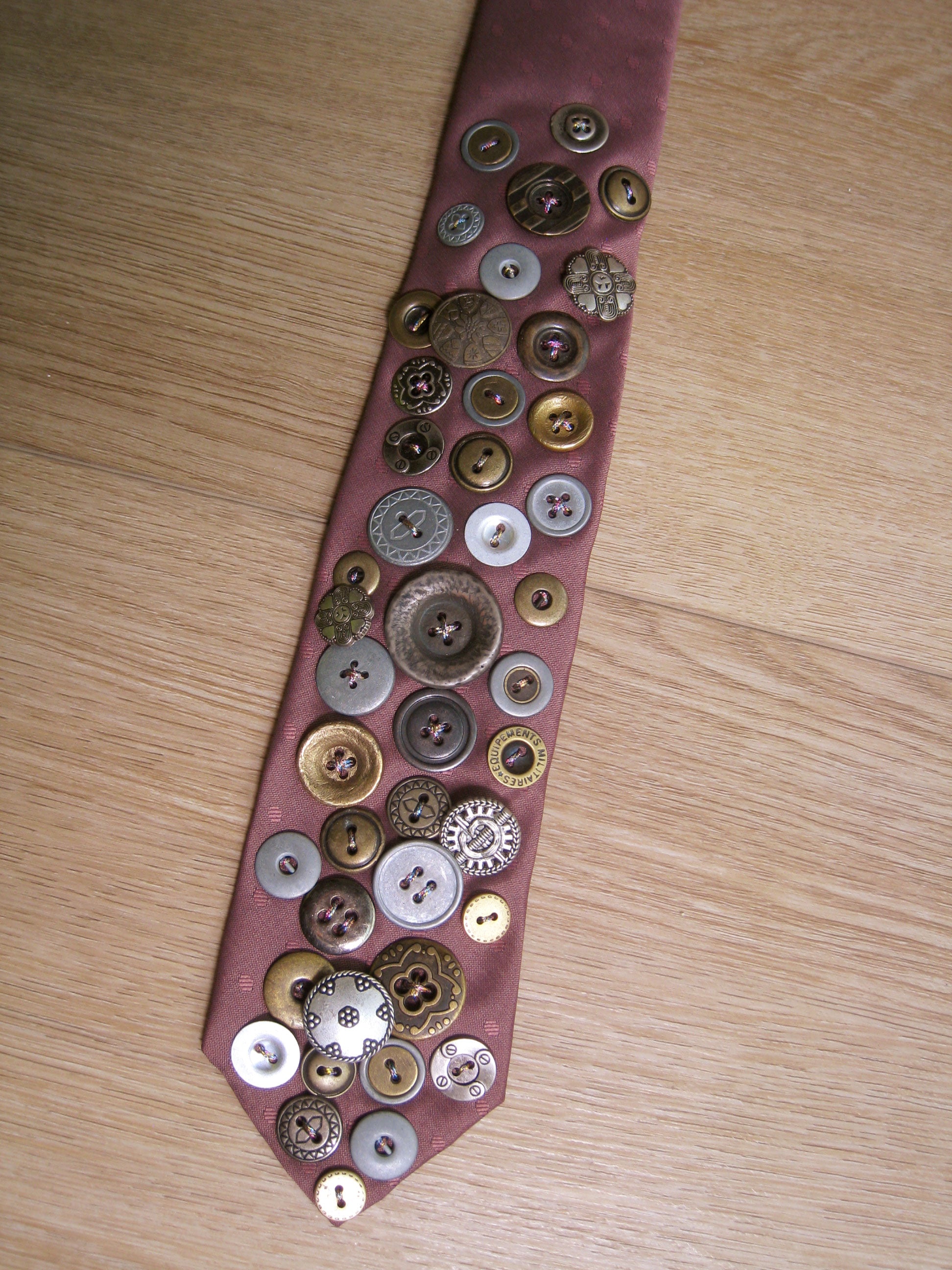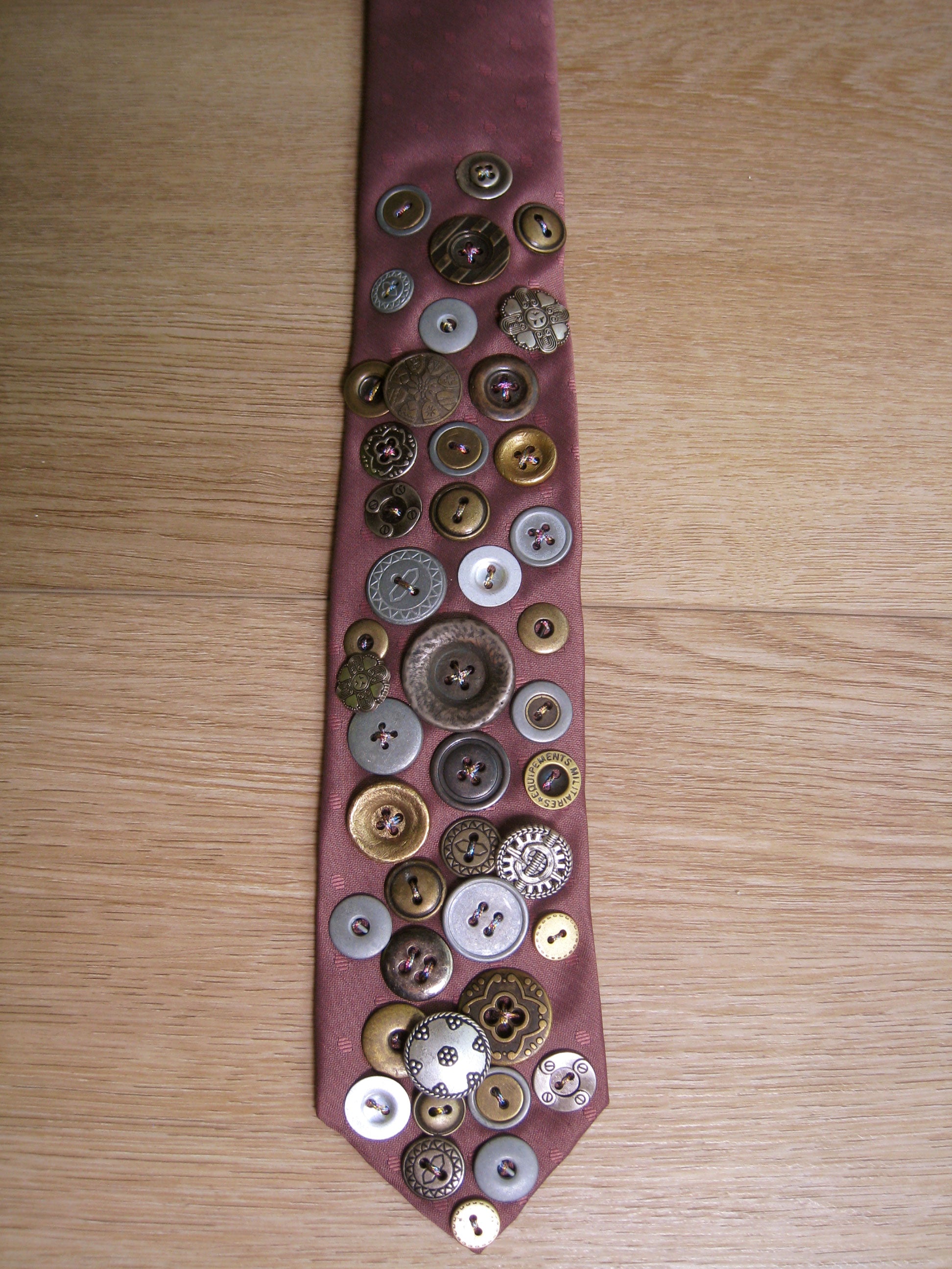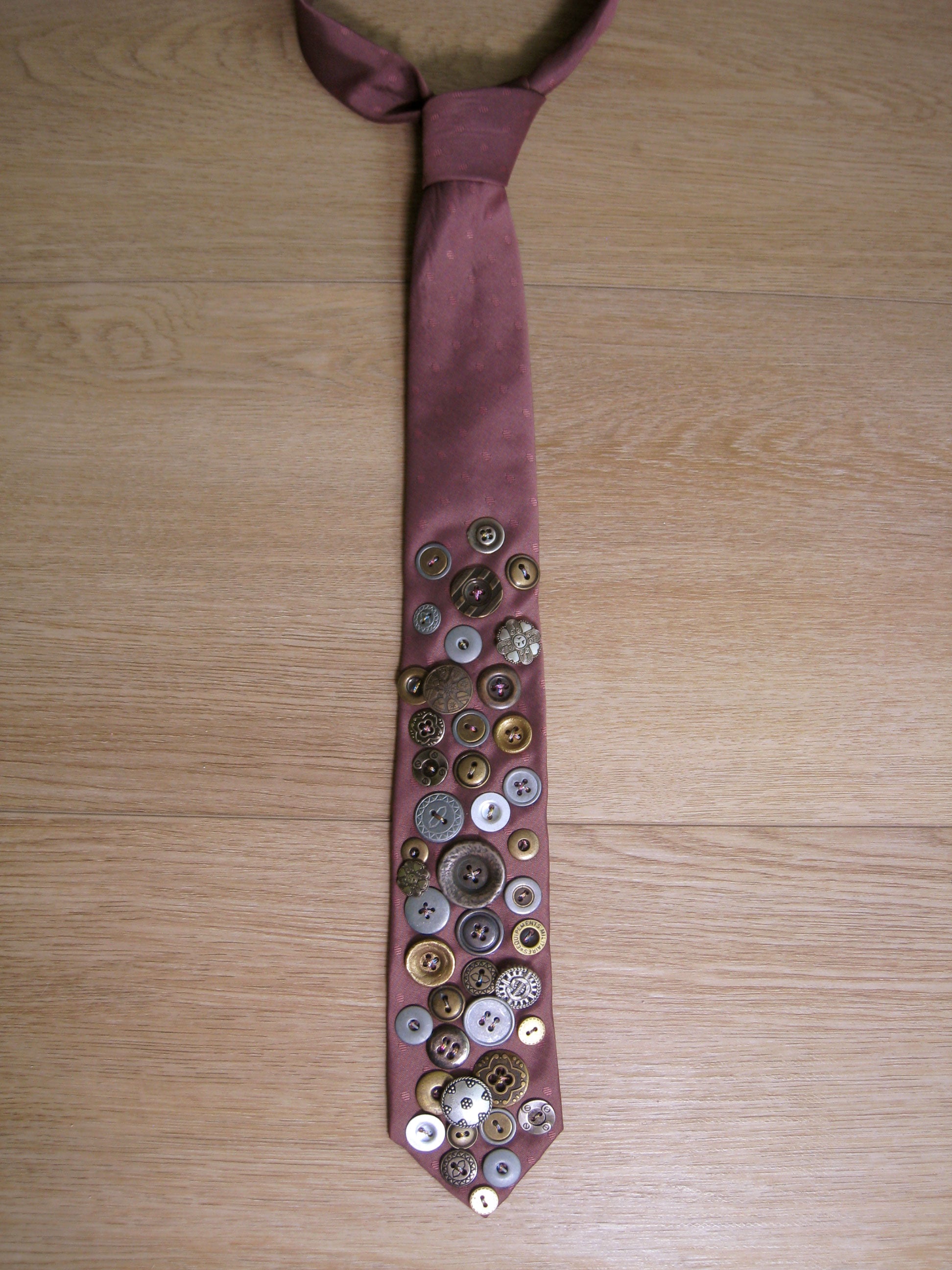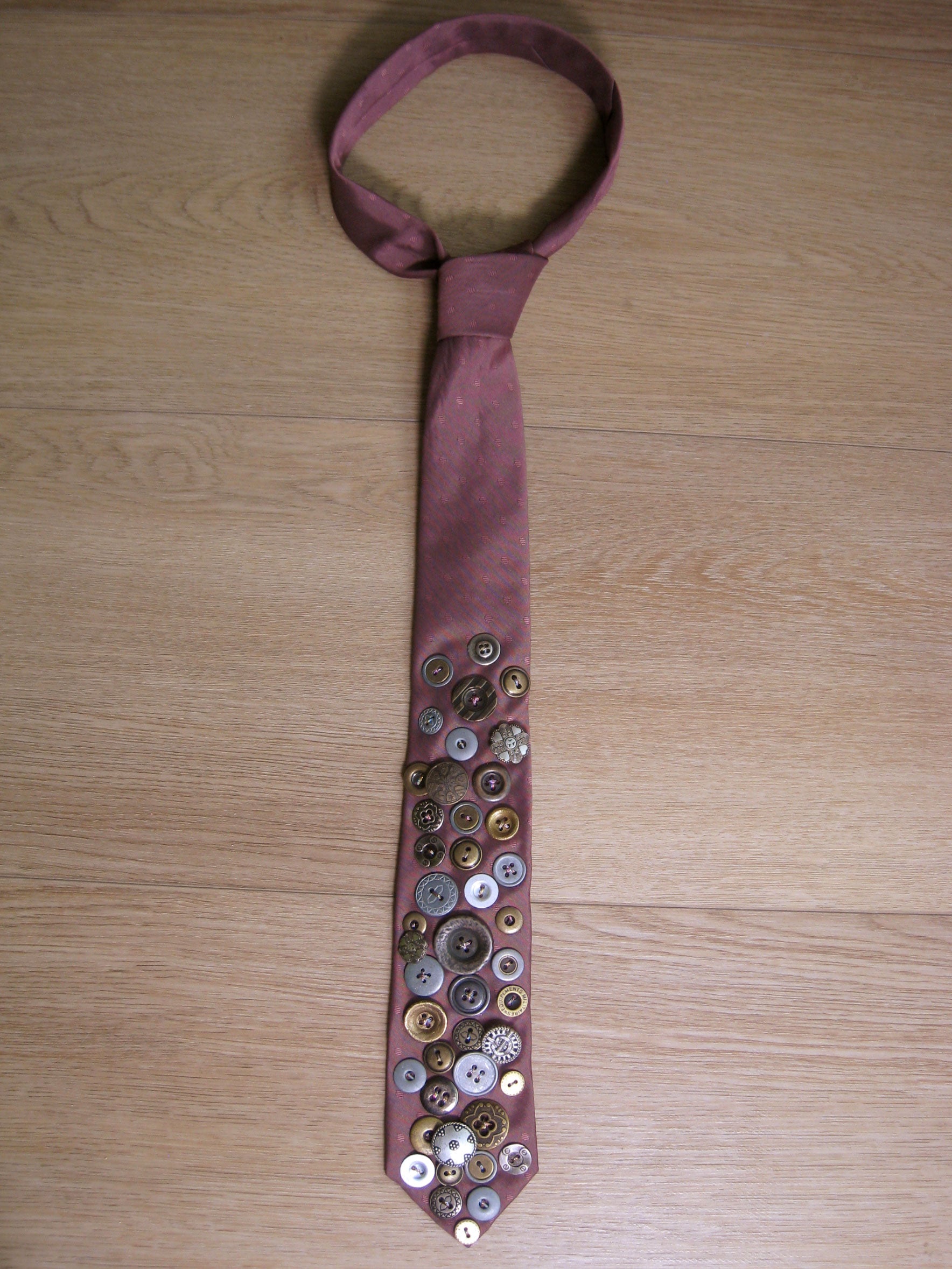 one of a kind upcycled vintage tie featuring hand embellished buttons.