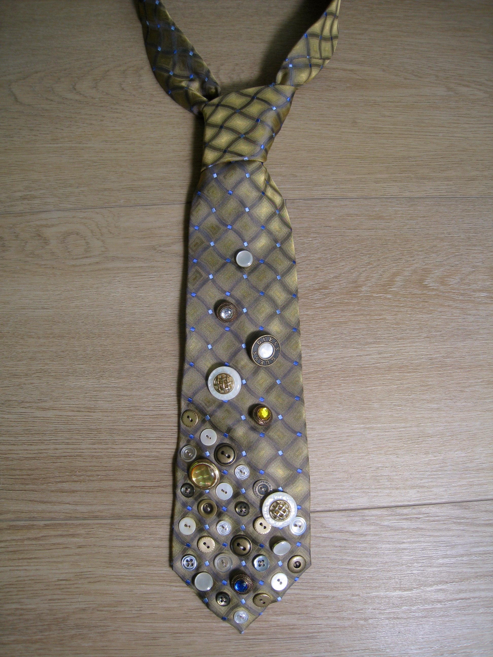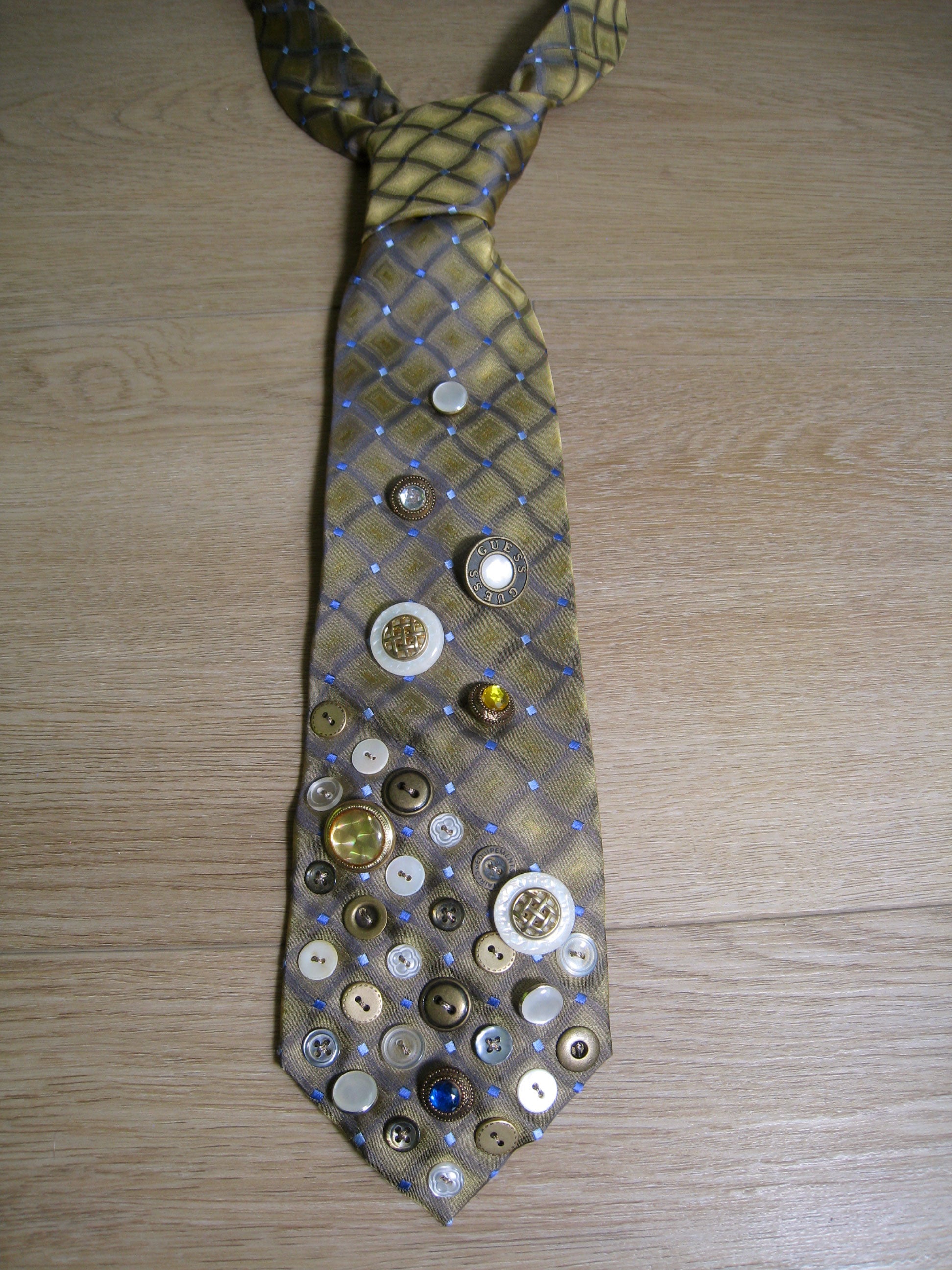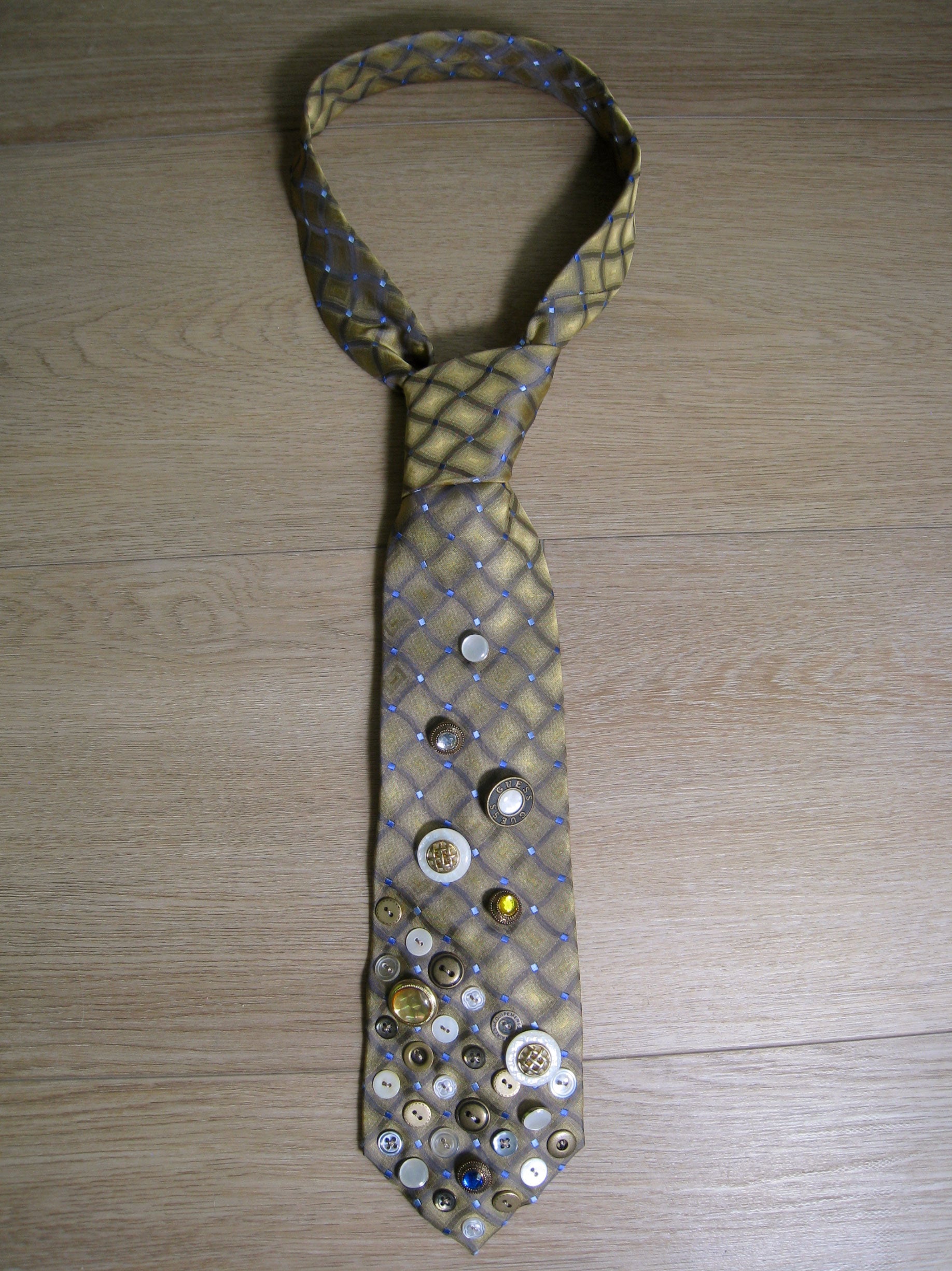 one of a kind upcycled vintage tie featuring hand embellished buttons.